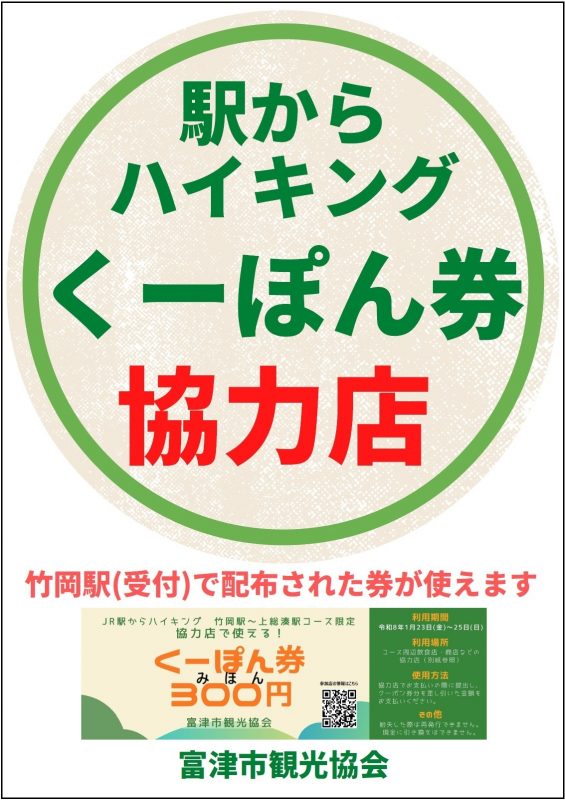 ・協力店で使えるくーぽん券(300円)お一人様1枚プレゼント